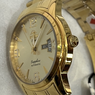 Đồng hồ Nam Hiệu FURI M3331A Kiểu dáng tròn mặt vàng Lịch ngày góc 3h Kính saphire Vỏ dây thép không rỉ Size 38mm Giá : 4.600.000đ Hàng chính hãng Dinhthaihai.com