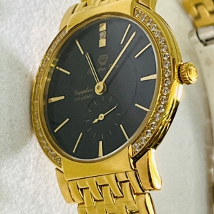 Đồng hồ nử Hiệu Olympia star 58077Lk Kiểu dáng tròn mặt đen kim gió góc 6h Kính saphire Vỏ dây thép không gỉ công nghệ mạ chân không Máy Quartz Size 30mm Hàng chính hãng
